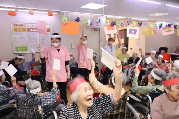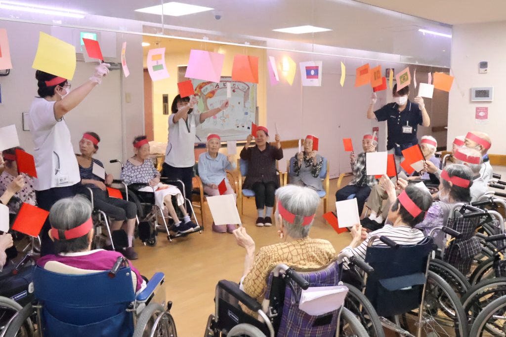 合図に少し迷いながらも、笑顔や笑い声があふれ、皆さん一生懸命に旗を上げ下げしておられました