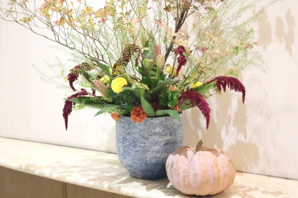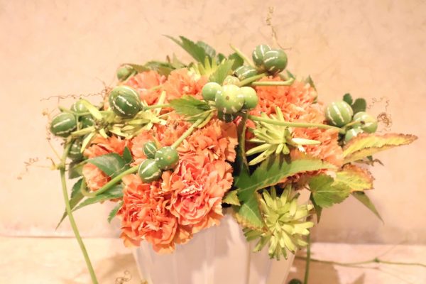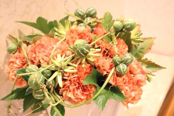 生花としてのかぼちゃは、丸みのある形や豊かな色合いが可愛らしく