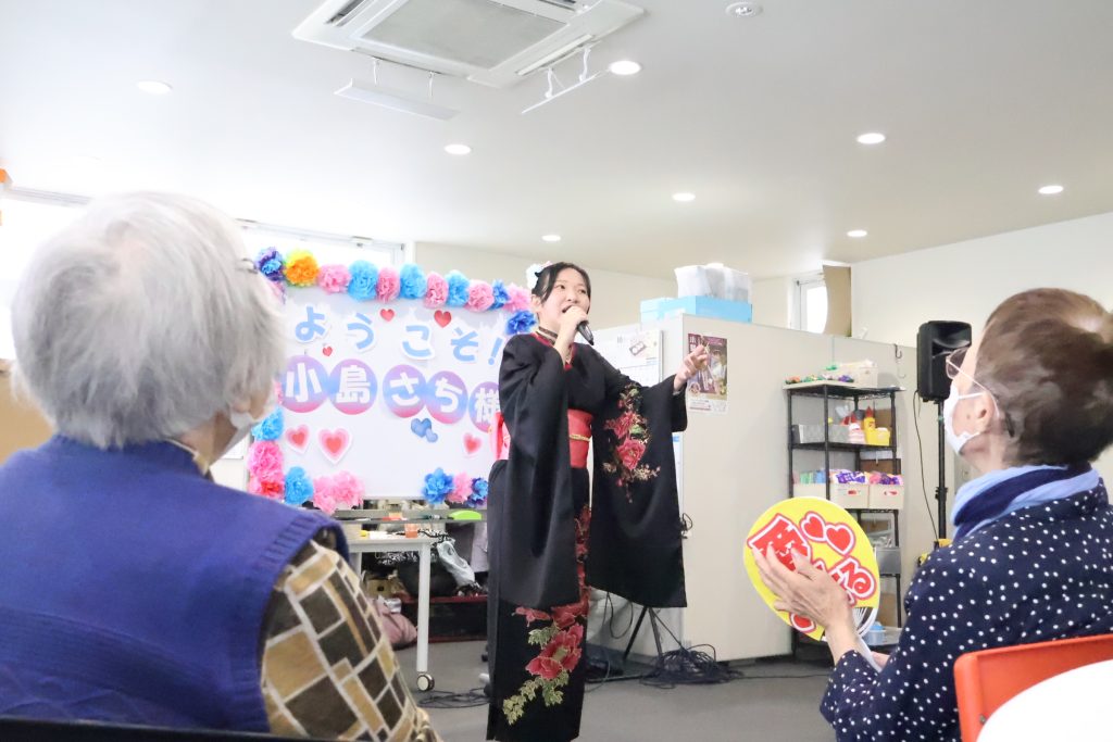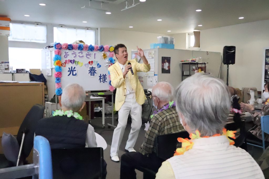 歌手の方にお越しいただき、プロの歌声を堪能されたご利用者様は毎回すがすがしい表情をされ、私たちも嬉しい気持ちになります♪