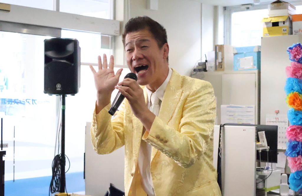 岸和田市出身でご当地ソングをたくさん歌われており、透明感のある優しい歌声がフロアに響きます