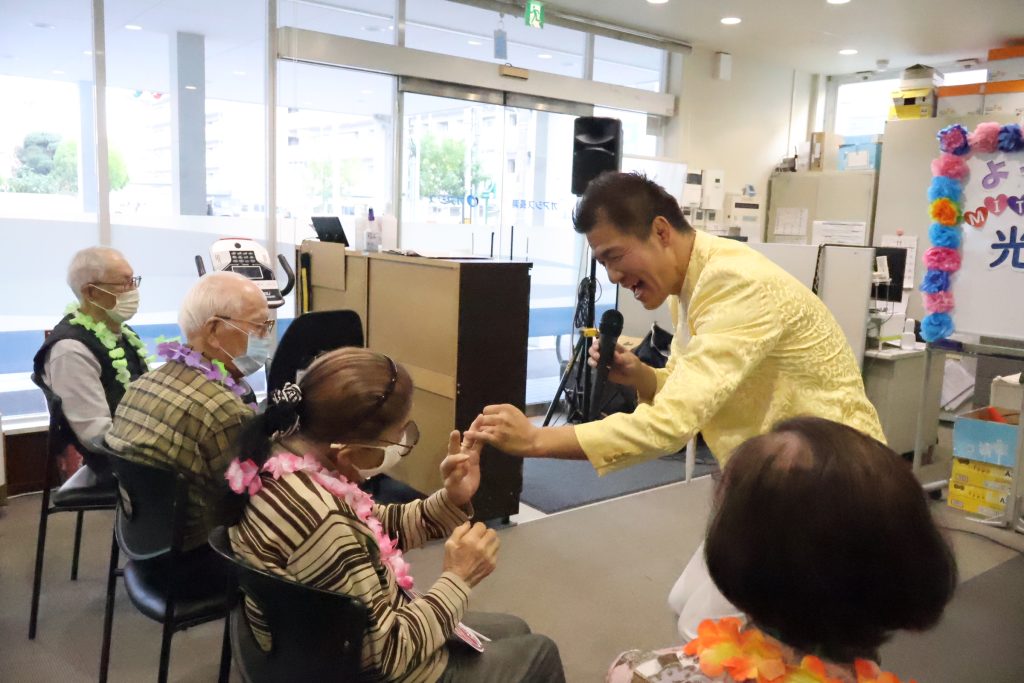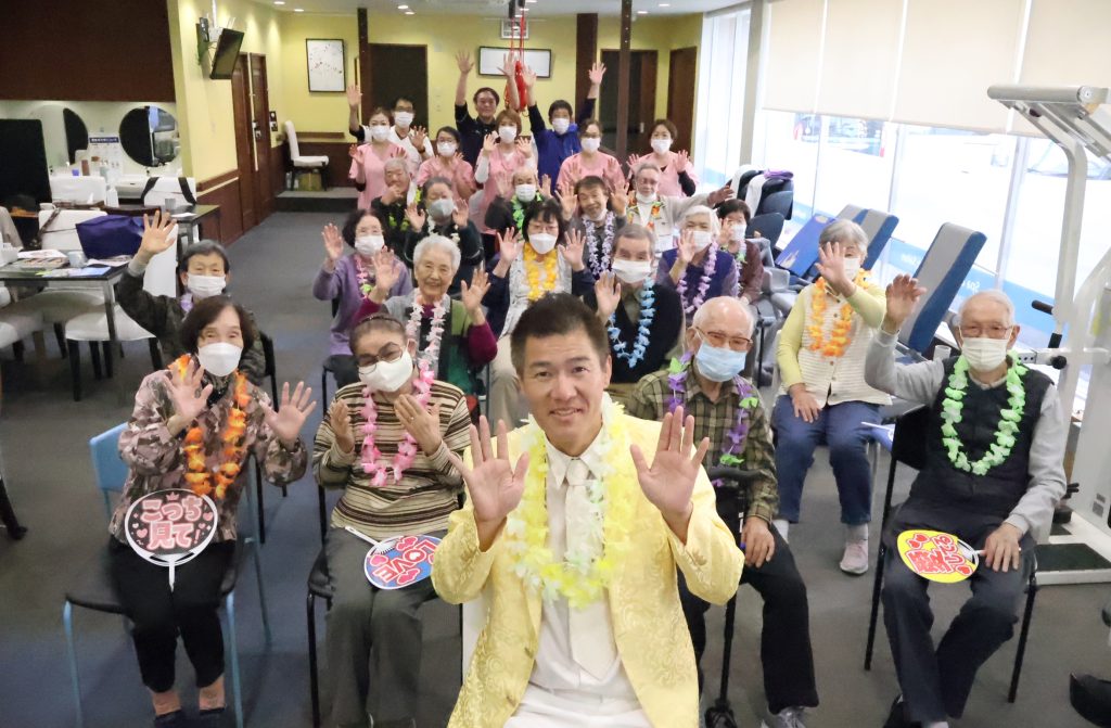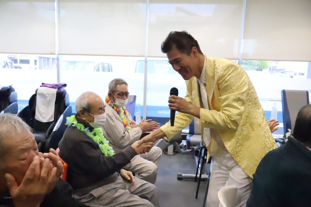 最後は大サービス!ご利用者様と握手をして回りながら熱唱していただき、フロアのテンションもMaxです(≧▽≦)ノ
