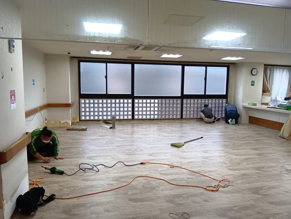 入所フロアのリニューアルは、通所サービスとは異なり、365日入所者様が生活されている環境で行うため、細心の注意と工夫が必要となります
