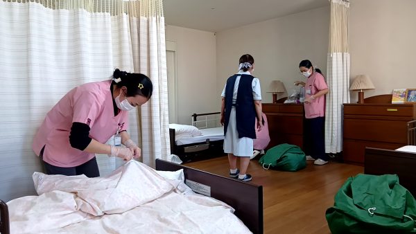 島崎科長から、「古いシーツは、決して床に置いてはいけませんよ」と指導が入ります