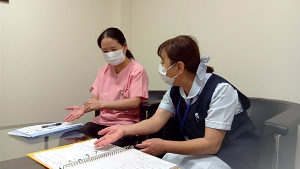 オムツの当て方をマスターした後は、先輩スタッフのサポートのもとで実際の入所者様のケアに入り、ゆくゆくは独り立ちしていく予定です