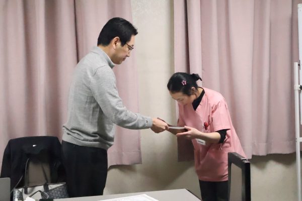 合格証は、当法人の木下理事長より、一人ひとりに直接手渡されました