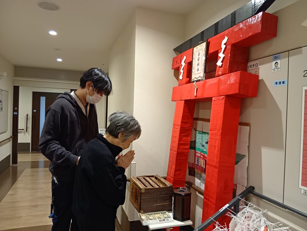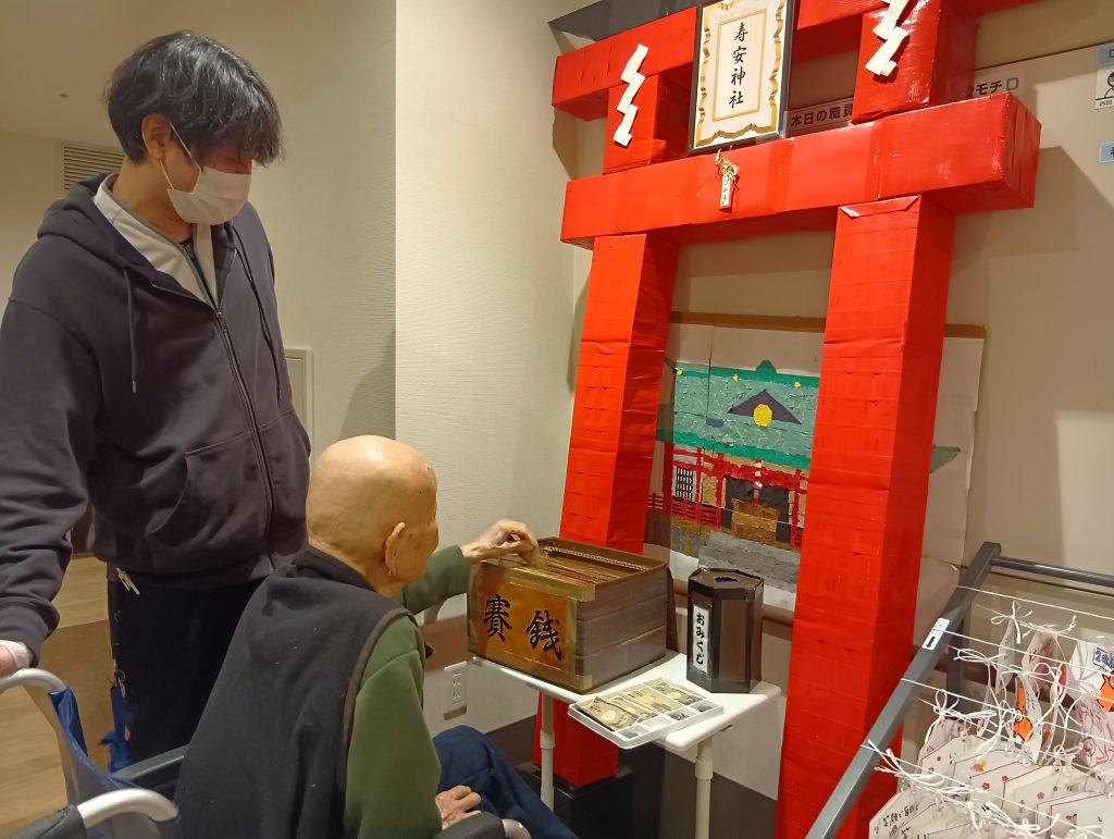 初詣の目玉は、なんといっても介護スタッフが手作りした「神社セット」です!