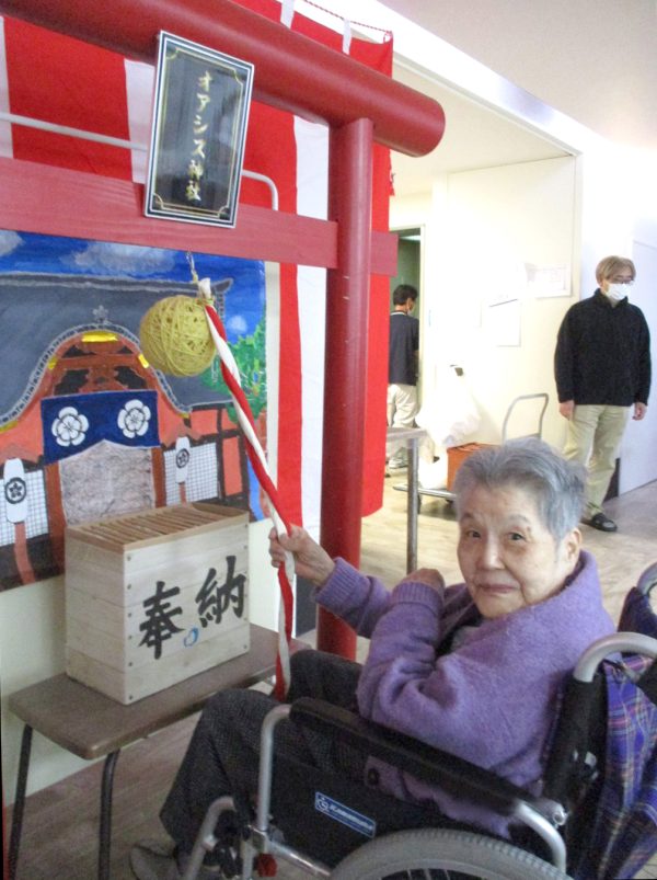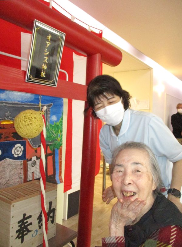 先日、毎年恒例となっている職員手作りの「オアシス神社」による初詣イベントを開催しました