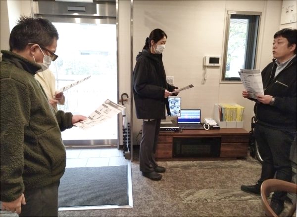 1月22日(木)、入居者様と一緒に「地震と火災の訓練」を行いました