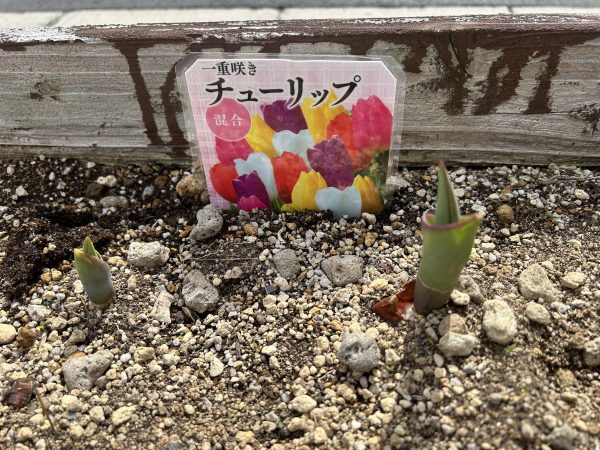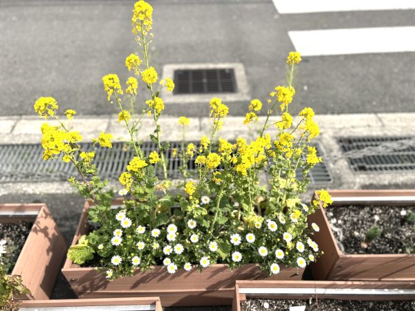 花壇にはご利用者様と植えたチューリップも芽吹いてき、菜の花もきれいに咲いてきました