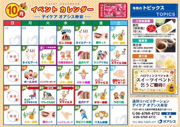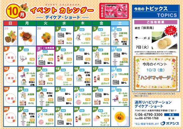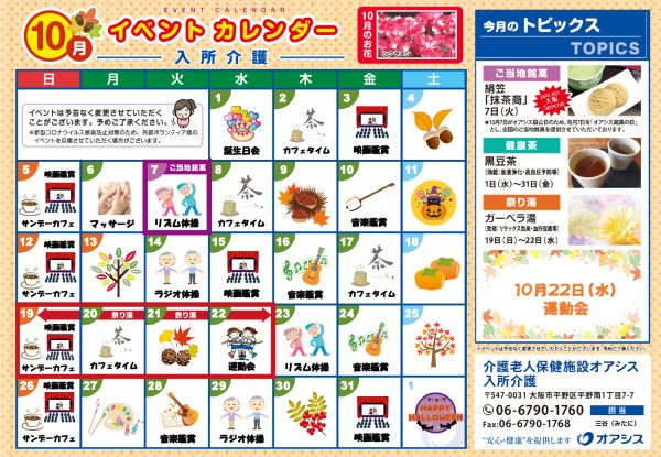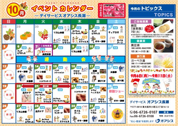 令和7年9月度 オアシス介護施設イベントカレンダー掲載のお知らせ