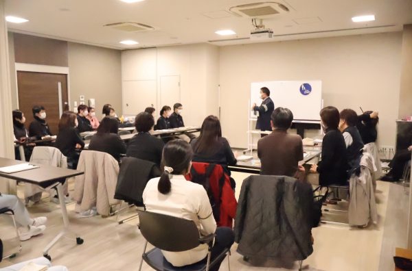 令和8年2月17日(火)、特別養護老人ホーム オアシス寿安(大阪市平野区長吉六反)1階 地域交流室にて、大阪府平野警察署 交通課の田丸警部補をお迎えし、『2026年4月施行 自転車に関する改正道路交通法 講習会』を開催いたしました